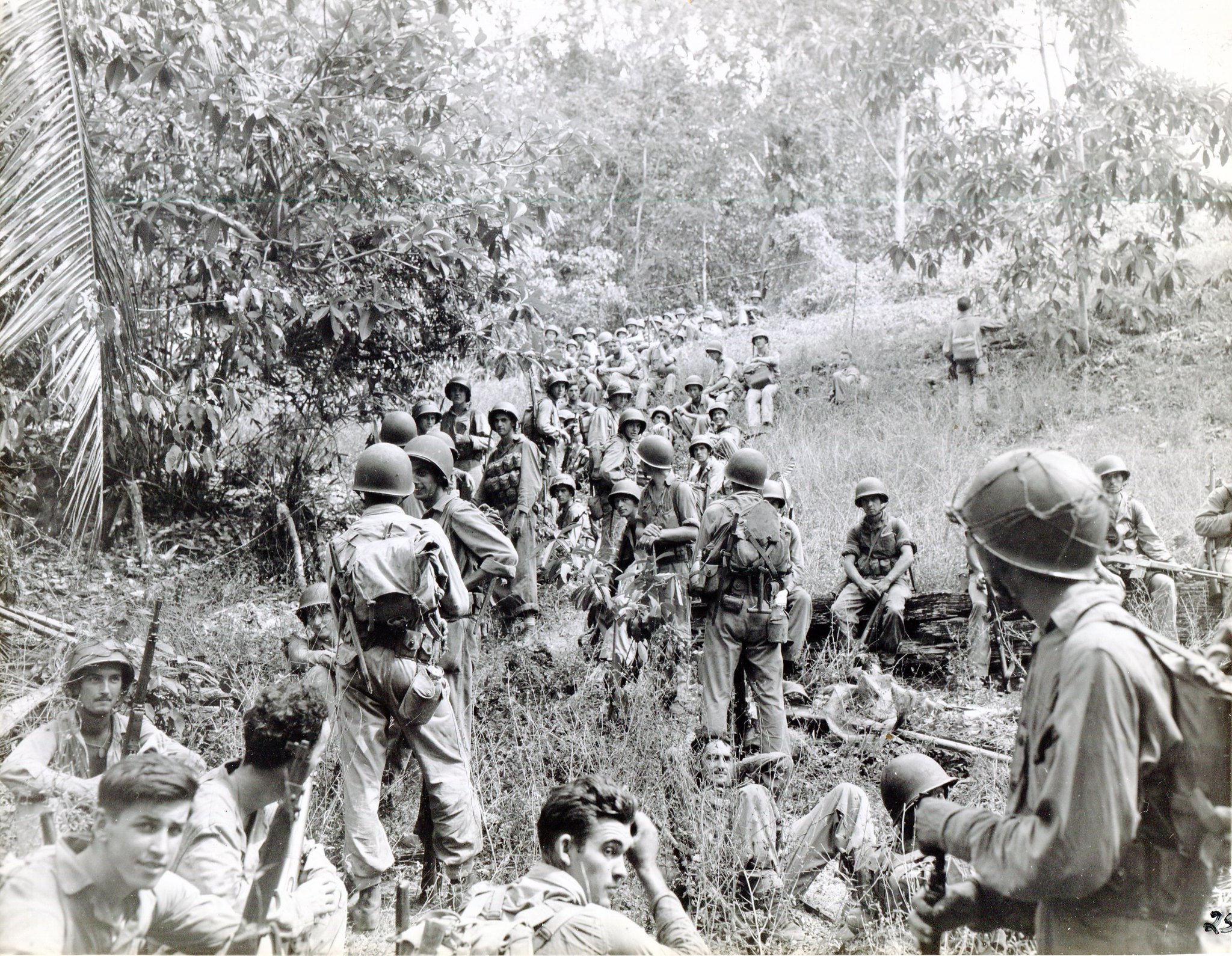 As the U.S. advanced, Japanese guerilla defense tactics became increasingly desperate with forces refusing to surrender even when heavily outnumbered.