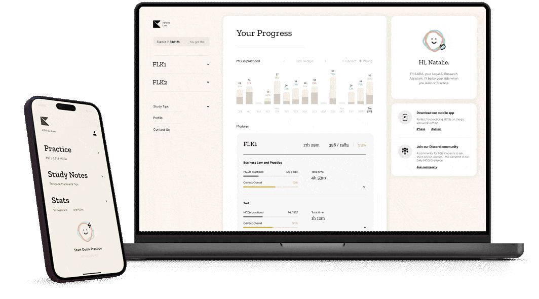 All-in-one revision tools, like KINNU Law, provide convenient access to streamlined notes, practice questions, and real-time progress tracking, making your revision structured, efficient, and effective.